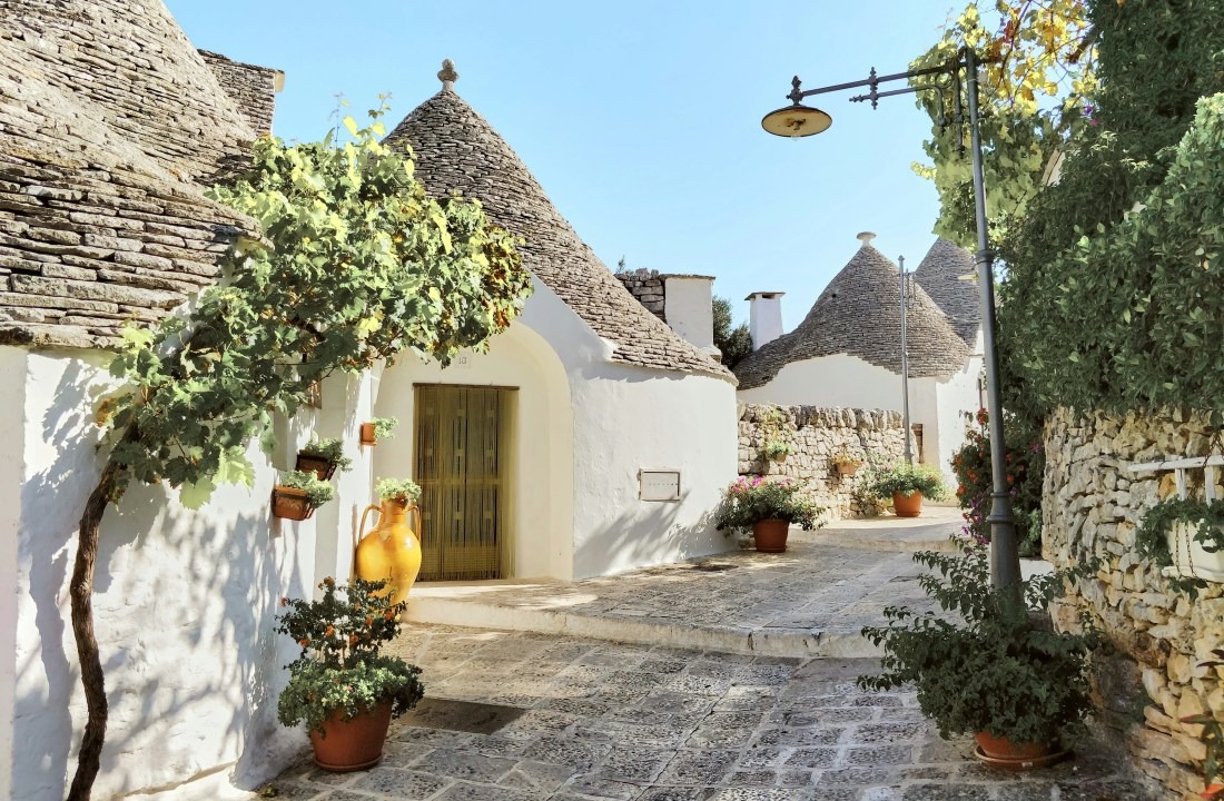 After breakfast, with your lovely driver, you will head east into Puglia’s Itria Valley, a gently rolling landscape defined by olive groves and vineyards to Alberobello, a UNESCO-protected town famous for its hundreds of whitewashed trulli, traditional dry-stone huts with distinctive conical roofs.